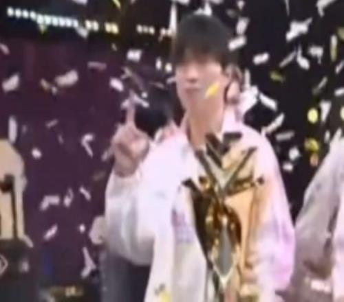真世一上!Bin面对镜头做出1的手势随后捧起奖杯