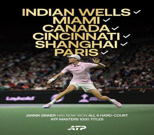 辛纳解锁全部六站硬地大师赛冠军,一纪录比肩德约费德勒
