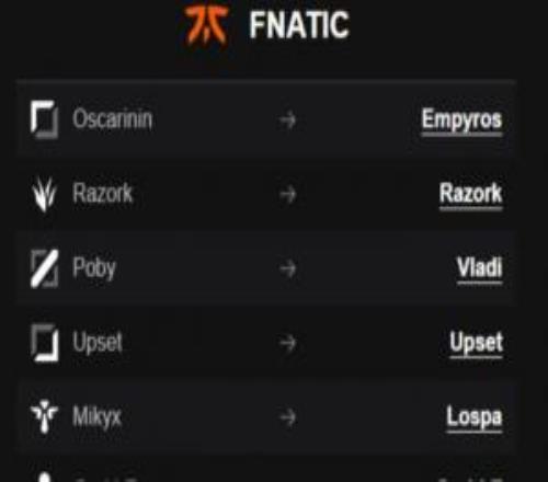 电竞体育11月29报道 近日网传FNC新赛季的阵容名单,上中辅有变动。