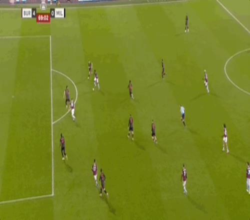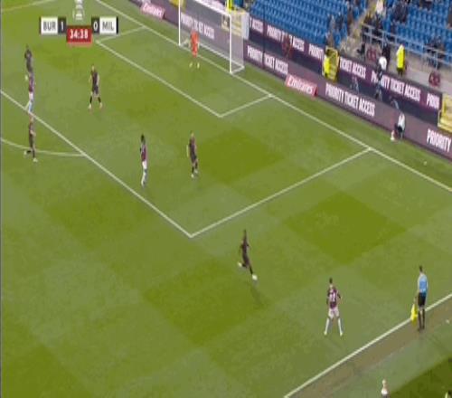 第65分钟,米尔沃尔后卫解围失误,巴恩斯抽射梅开二度,伯恩利4-0领先