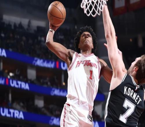 本场比赛中,火箭的先发控卫阿门-汤普森(Amen Thompson)算是将自己的弱点暴露无遗。阿门全场出场35分52秒,投篮23中11,罚球3中3,得到了25分7篮板4助攻4抢断1盖帽的数据,还有2次失误,正负值为-15。阿门在进攻端看起来还是展现出了不错的突破能力,他也是通过这样的方式得到了不少的分数。不仅如此,阿门在防守端的表现也是值得肯定的,他也是展现出了自己在这方面的特点。然而问题就在于,到了比赛第四节,马刺调整了对于阿门的防守布置,阿门的突破成功率下降,他在中距离投篮方面毫无准星,他又没有足够的传球能力和组织能力,球队的进攻陷入了彻底的停滞,这也是球队最终遭遇了一场惨败的关键因素。