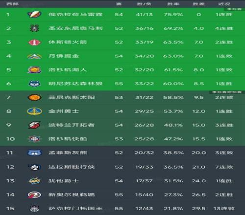 西部最新积分榜