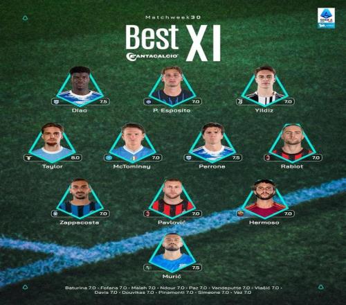 意甲官方第30轮最佳阵容: