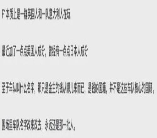 其实类似的反应,在几年前知乎一条关于“为什么F1没有中国车队”的问题上已经反复出现,大家讨论的焦点基本集中花重金在欧美体系的赛车赛事中找存在感实在没有必要。