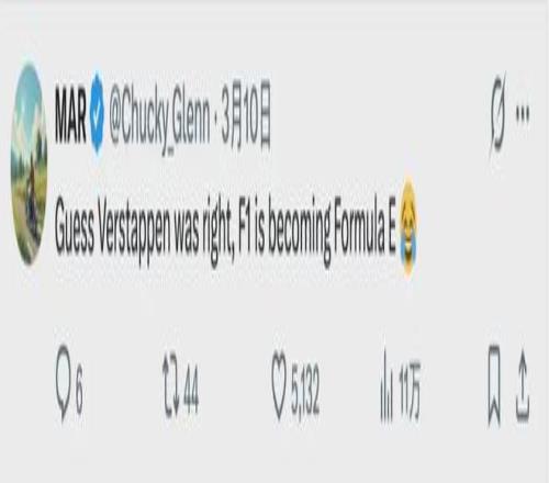有网友表示,四届WDC冠军车手潘子维斯塔潘果然是对的,F1这下真成FE了。